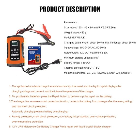 Amazon Com Gorge Buy Car Motorcycle Ups Battery Charger 12v Full
